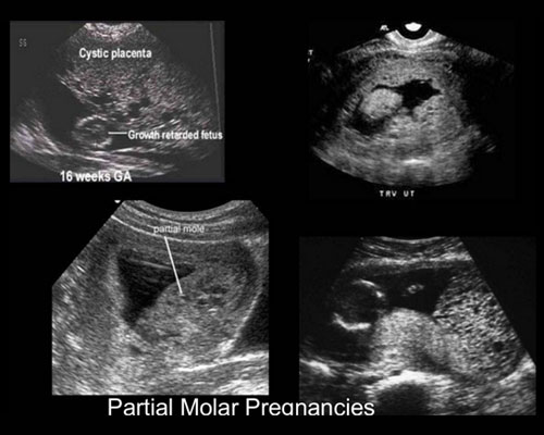 • Partial molar pregnancy. There is an abnormal placenta and some fetal development.